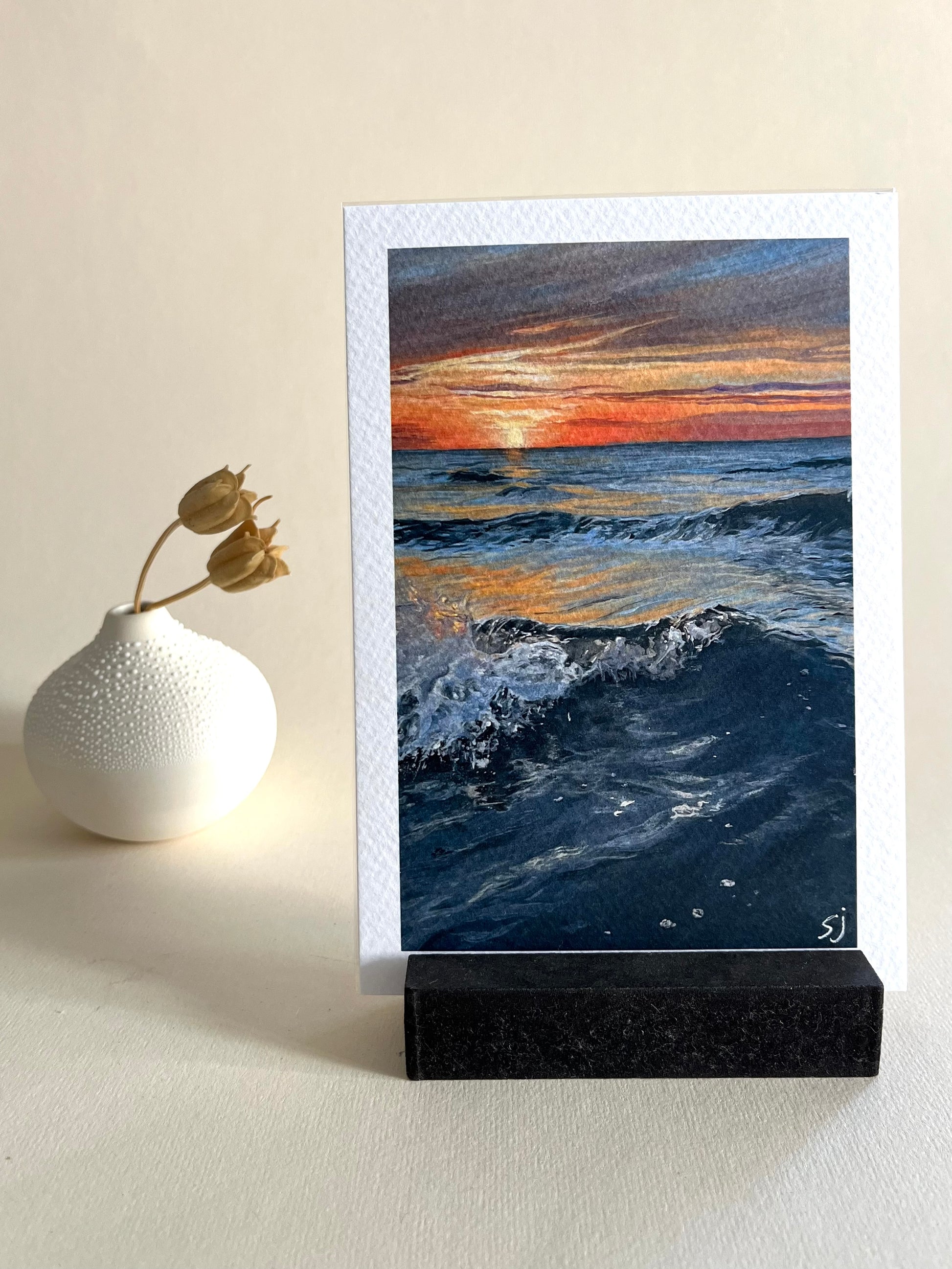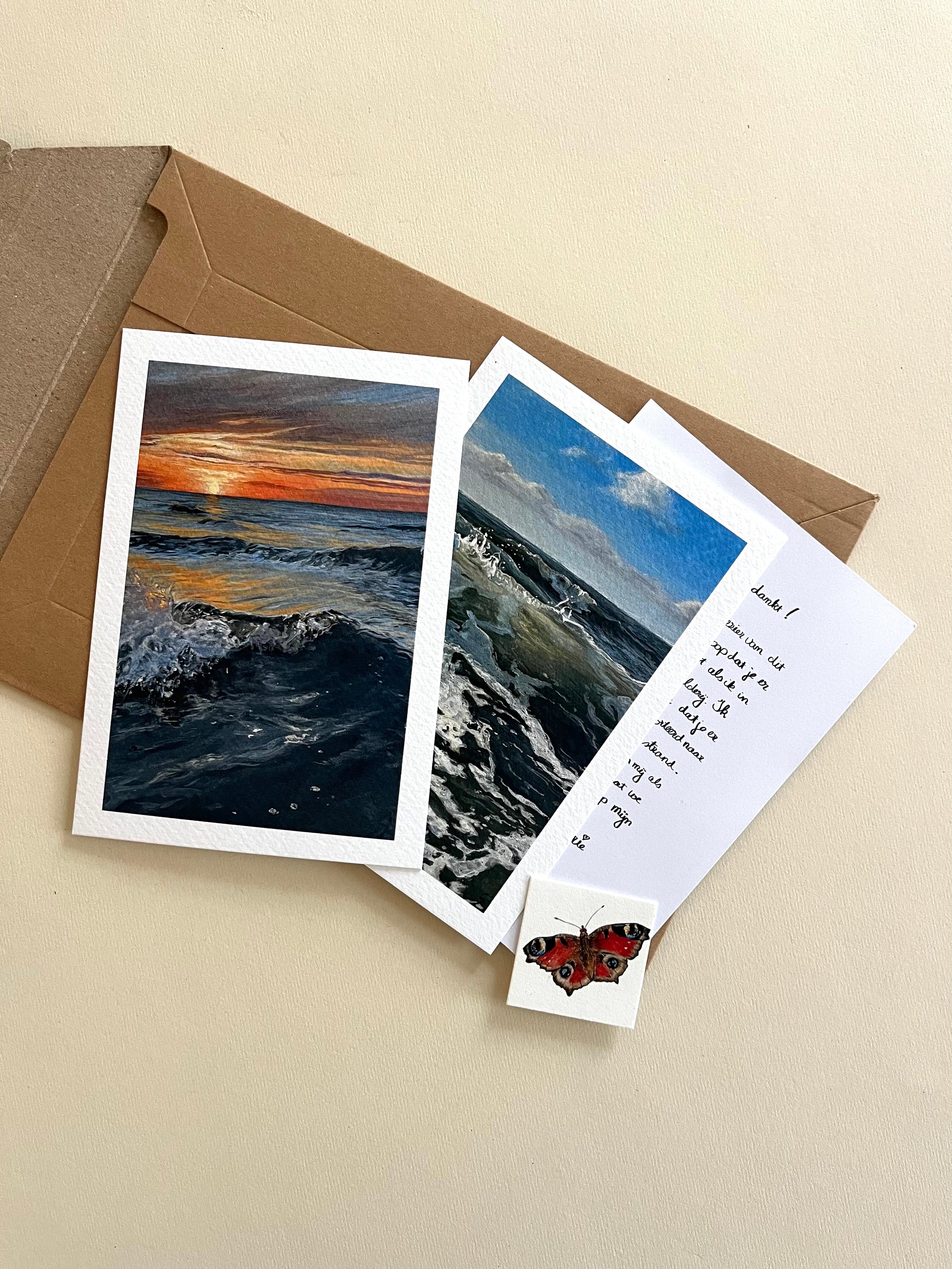 Een setje van de 2 art prints van mijn schilderijen van de Noordzee bij Schiermonnikoog. De prints komt inclusief een berichtje van mij en een gratis mini verzamelkaartje. Leuk voor in een kaarthouder, aan de muur, of zoals ik heb gedaan in een fotolijstje (de print wordt verkocht exclusief kaarthouder en/of fotolijstje)